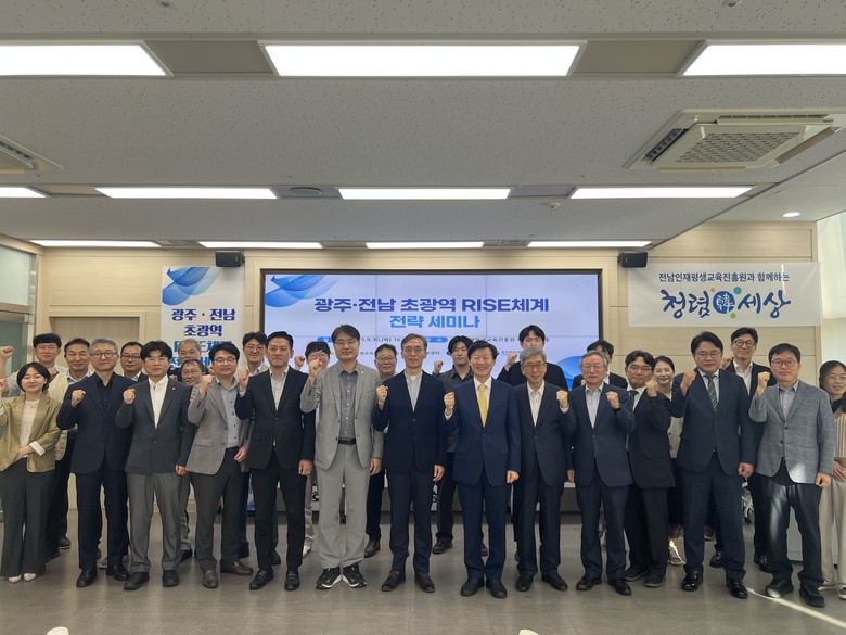 [전남 세계타임즈=우덕현 기자] 광주·전남 RISE센터는 9월30일 전남인재평생교육진흥원에서 ‘광주·전남 초광역 RISE체계 전략 세미나’를 열고 지역 혁신성장을 위한 인재 양성 방안 등을 논의했다고 밝혔다.
