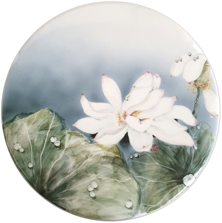 'K-아트페어'에서 선보이는 물방울과 연꽃의 조화로운 풍경은 화려함의 겉멋 보다 내면의 아름다움을 밖으로 진전시켜 꾸밈없는 순수 매력을 체감하는 시간을 만들고자 한다. 식물 자체에서 형성되는 색 그대로 채색하여 부담감이 없고 편안한 심리를 만든다. 매끄러운 도판은 꽃잎의 신선함을 표현하는데 부족함이 없고, 색의 계조에 따라 연꽃 잎사귀는 살아 있는 듯 움직임이 포착된다. 묵의 농담이 연상되듯 꽃잎의 색상은 진하고 묽은 부분의 계산이 치밀해 생동감이 넘친다.