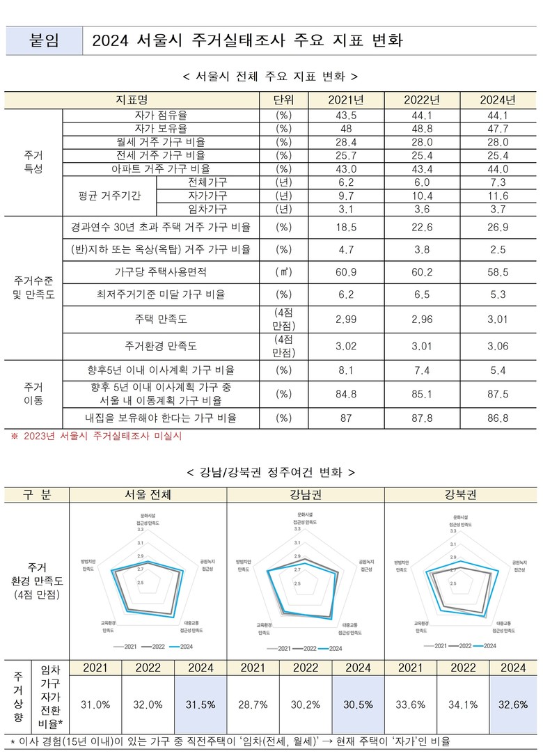 <평균 거주기간 늘고 반지하 거주 감소…서울 정주여건 전반 개선>