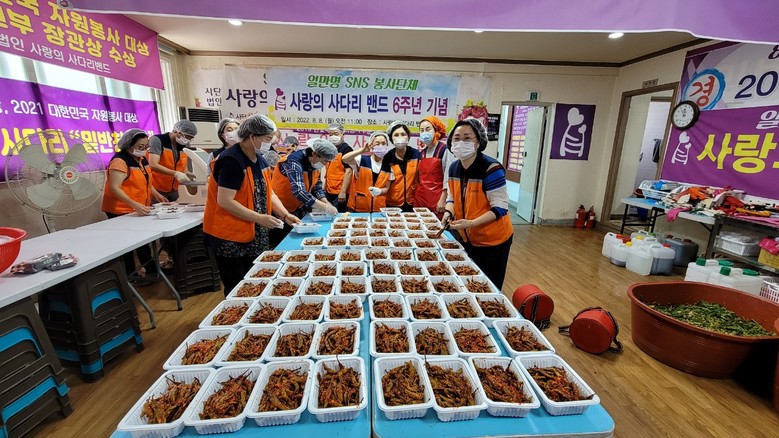 [대전 세계타임즈=이채봉 기자] 대전광역시 SNS 일만명 봉사단체 사랑의 사다리 밴드(리더 이정제)는 26일 오전9시, 대덕구 중리동에 위치한 사무실에서 서구 소외계층 75가정에 열무김치, 고추지 등 밑반찬을 전달 하였다.