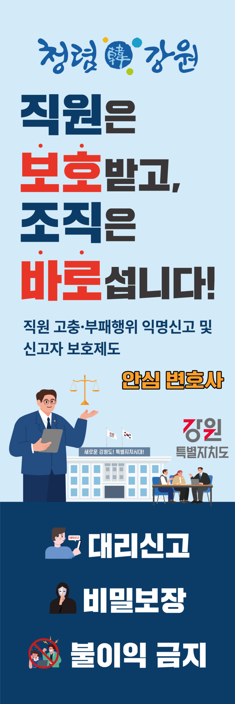 강원 안심변호사는 2028년 2월까지 2년간 활동하며 공익제보 상담, 신고 관련 법률 자문, 비실명 대리신고 수행 등을 지원한다.