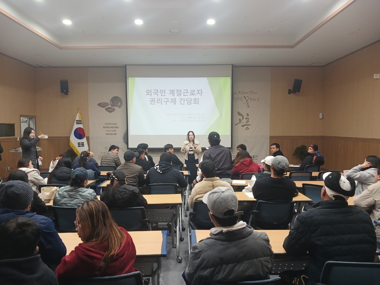 [고흥군 세계타임즈=우덕현 기자] 고흥군(군수 공영민)은 지난 12일 고흥분청문화박물관 강당에서 관내 외국인 계절근로자의 인권 보호와 실질적인 권리구제를 위해 ‘외국인 계절근로자 권리구제 간담회’를 개최했다고 밝혔다.