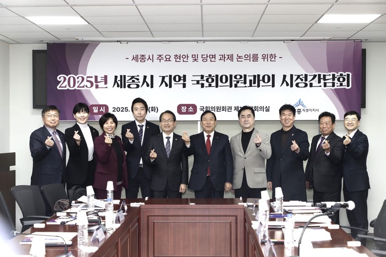 이날 간담회에서는 최민호 시장과 지역 국회의원은 물론 임채성 시의회 의장, 시의원, 주요 실·국장이 모두 참여해 행정수도 완성 등 시정 주요 현안과 핵심 당면 과제를 논의했다.