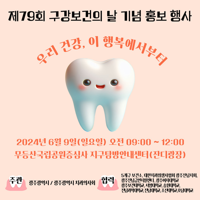 이번 행사 주제는 ‘우리 건강, 이(齒) 행복에서부터’이다. 구강보건의 날은 구강보건에 대한 이해와 관심을 높이기 위한 법정기념일로, 첫 영구치인 어금니가 나오는 6세의 ‘6’과 어금니(구치·臼齒)의 ‘9’를 숫자화해 평생 사용해야 할 치아를 소중하게 관리하자는 의미를 담아 6월 9일로 정했다.