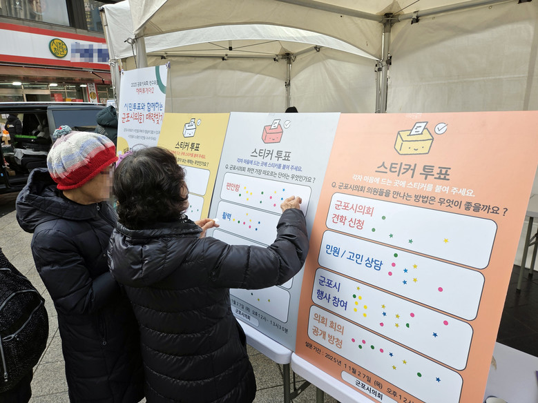 제시된 예시에 대한 스티커 투표 방식으로 진행된 이 설문에는 약 100명이 참여했고, 시의회는 이번 설문 자료를 정리해 시민의 의정 참여 활성화와 홍보 방식 개선 등을 추진할 예정이다.