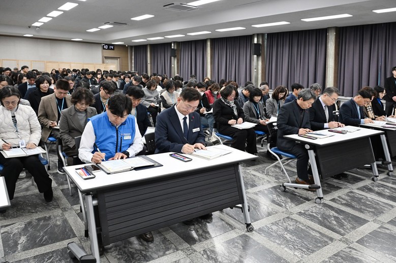 이날 서약식에서는 구청장의 청렴서약서 낭독 후 노조위원장의 갑질근절 및 상호존중 실천 서약서 낭독이 이어졌다. 참석한 직원 전원은 2026년도 업무수첩의 청렴서약서 및 상호존중 실천 서약서에 서명하고, 각 부서에서 생중계 방송으로 서약식을 시청하는 전 직원 또한 서명에 동참하며 청렴과 상호 존중의 실천을 함께 다짐했다.
