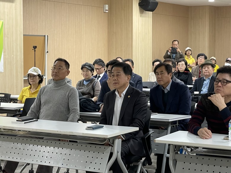 | ▲ 지난 11월 21일 서울시의회 별관 제2대회의실에서 열린 ‘하이컨디션-UN본부행사 및 월드컵응원전 준비조직위원회 발대식’에 참석한 김용호 서울시의원(앞줄 중앙)이 강연을 듣고 있다. |