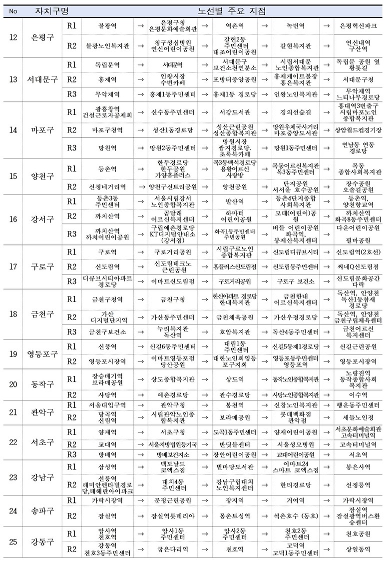 활동 거점은 지하철역, 복지시설, 공원 등 디지털 접근 수요가 높은 생활공간을 중심으로 자치구별 2~3개씩, 총 62개 노선을 설계해 시민 접점을 높였다.