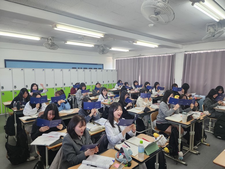 | ▲ 정광고등학교 3학년 수험생들이 이정선 교육감의 응원메시지를 읽고있다 |