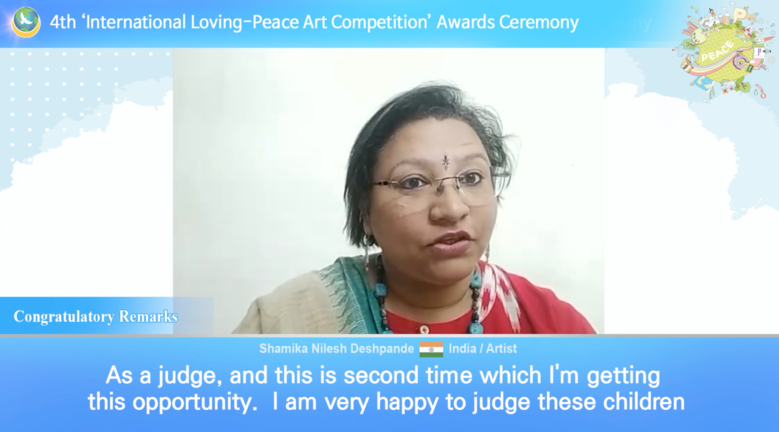 윤현숙 대표는 인사말을 통해 “올해의 그림 주제는 ‘평화의 빛으로 하나되는 지구촌’이다. 이번 수상작들의 예술성과 창의성이 매우 뛰어나고, 그림에 담긴 평화의 메시지로 인해 마음에 감동을 받았다”며 “우리는 지금 어느 때보다도 평화가 절실한 시기에 살고 있다. 평화를 이루기 위해서는 전쟁이 아니라 평화가 당연한 것임을 일깨우고 평화문화를 전 세계에 전해야 한다. 그림에 펼쳐진 세상처럼 평화의 문화로 지구촌이 하나되는 그날이 하루속히 완성되기를 소망한다”라고 말했다.