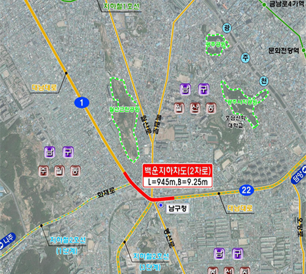 ‘남구청 앞 대남대로 선형개량공사(백운지하차도)’