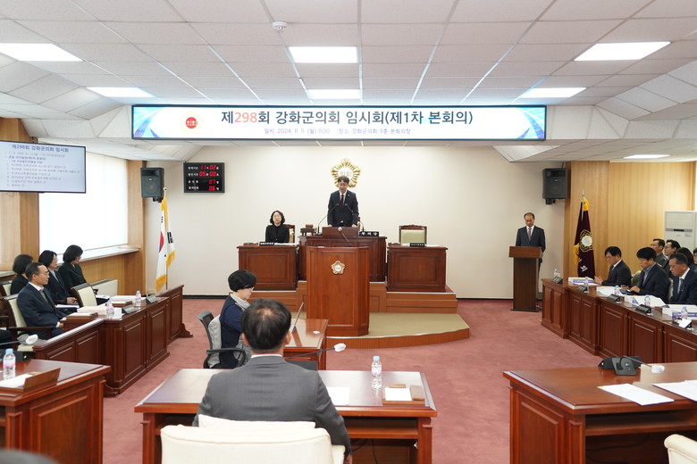 [강화군 세계타임즈=심하린 기자] 강화군의회(의장 직무대리 부의장 한승희)가 11일, 제298회 임시회를 개회하고 오는 19일까지 9일간의 의사일정에 돌입한다고 밝혔다.