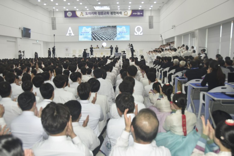 17넌 만에 지어진 새로운 교회에 축하하기 위해 모인 성도 7000여 명과 함께 뜻 깊은 봉헌예배를 드리는 모습.