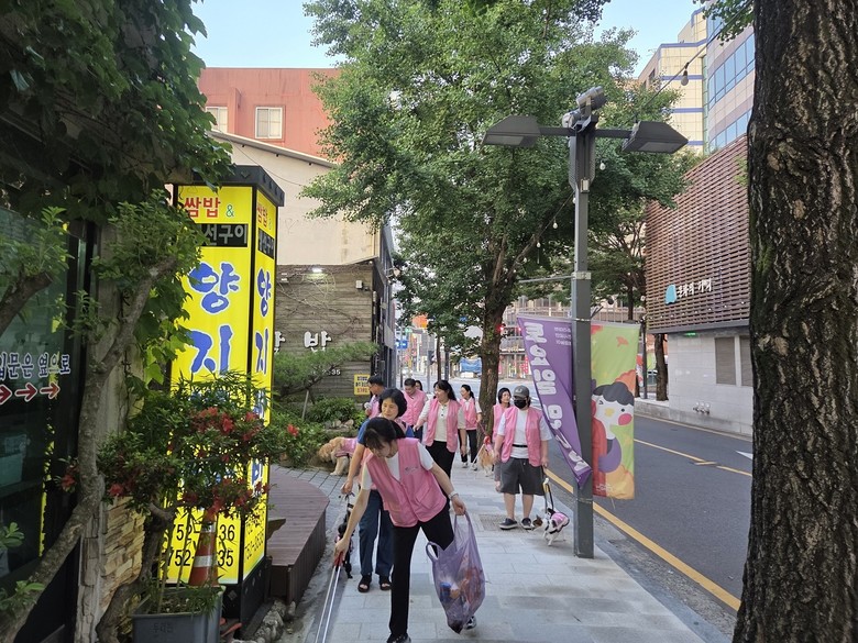 | ▲ 지난해 6월 순천시 반려견봉사단 ‘순댕이’가 문화의 거리에서 순찰 활동을 펼치고 있다 |