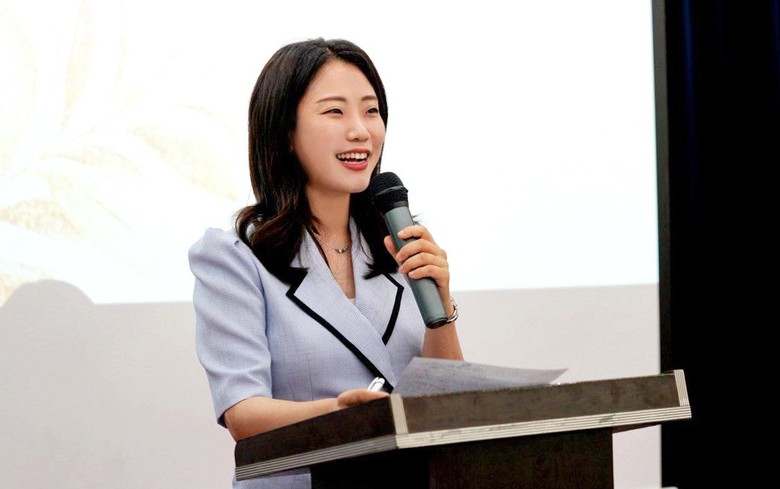 | ▲ ㈔세계여성평화그룹(IWPG) 전나영 신임 대표가 1일 서울 스페이스쉐어 서울중부센터에서 열린 대표이사 이·취임식에서 취임사를 하고 있다. [사진제공=IWPG] |