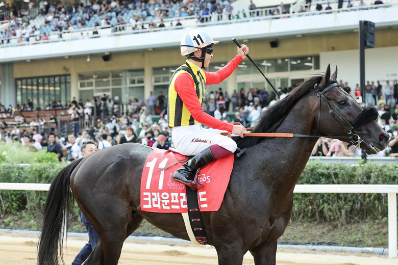 이어진 7경주로 개최된 ‘코리아컵’에서도 지난해 트로피를 들어 올린 일본의 ‘크라운프라이드’(일본, 5세, 수, 테루야요시다 마주, 신타니 조교사, 요코야마 기수)가 또다시 월등한 기량으로 챔피언 자리를 지켜냈다.