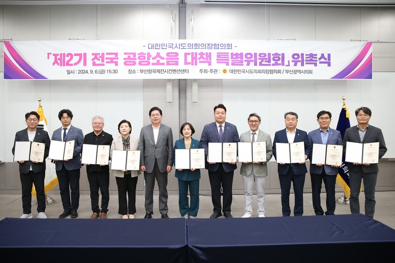 전국 공항소음 대책 특별위원회는 대한민국시도의회의장협의회 산하의 시도의회 의원 및 전문가 등으로 구성된 특별 기구로 지난 6월 제1기 위원회 활동을 마치고 새롭게 시·도의원 16명, 전문가 2명으로 제2기 위원회를 구성했으며, 공항소음 대응 정책 개발·연구, 관련 제도 개선 등 다양한 분야에서 활발한 활동을 전개할 예정이다.