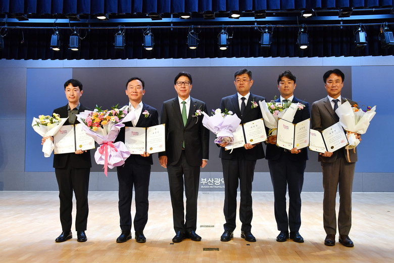 ▲예영해 ㈜중앙이엠씨 사장 ▲구관회 ㈜나인티에스 대표 ▲박경순 동의대학교 교수 ▲오창수 ㈜양수금속 대표 ▲이정민 시 건설본부 주무관이 설비 분야 기술 발전과 신기술 활용 촉진에 이바지한 공로를 인정받아 수상자로 결정됐다.