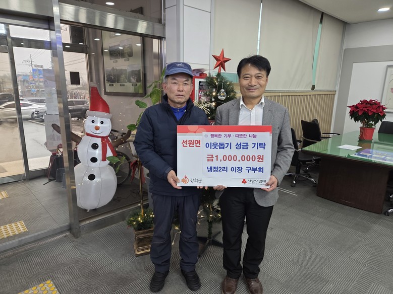 구부회 이장은 “연말연시를 맞아 주변을 돌아보며 이웃들에게 조금이나마 도움이 되고 싶었다”며, “이 성금이 어려운 이웃들에게 따뜻한 위로가 되길 바란다”고 말했다.
