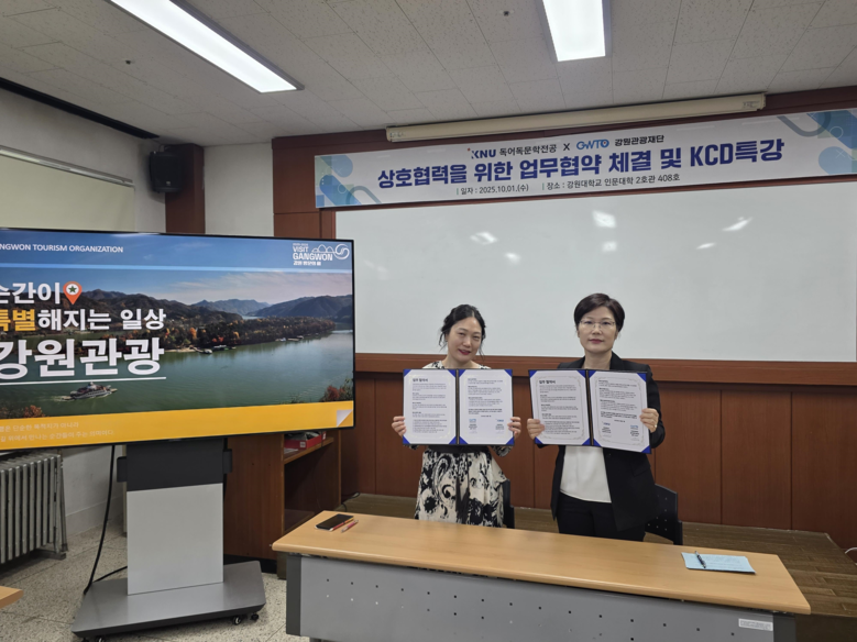 최성현 강원관광재단 대표이사는 “이번 협약은 글로벌 시장, 특히 독일어권과 유럽 시장에서 강원 관광의 경쟁력을 높이는 중요한 계기가 될 것”이라며, “독어독문학전공과의 긴밀한 협력을 통해 미래 관광 인재를 양성하고 강원의 국제적 위상을 제고해 나가겠다”고 말했다.