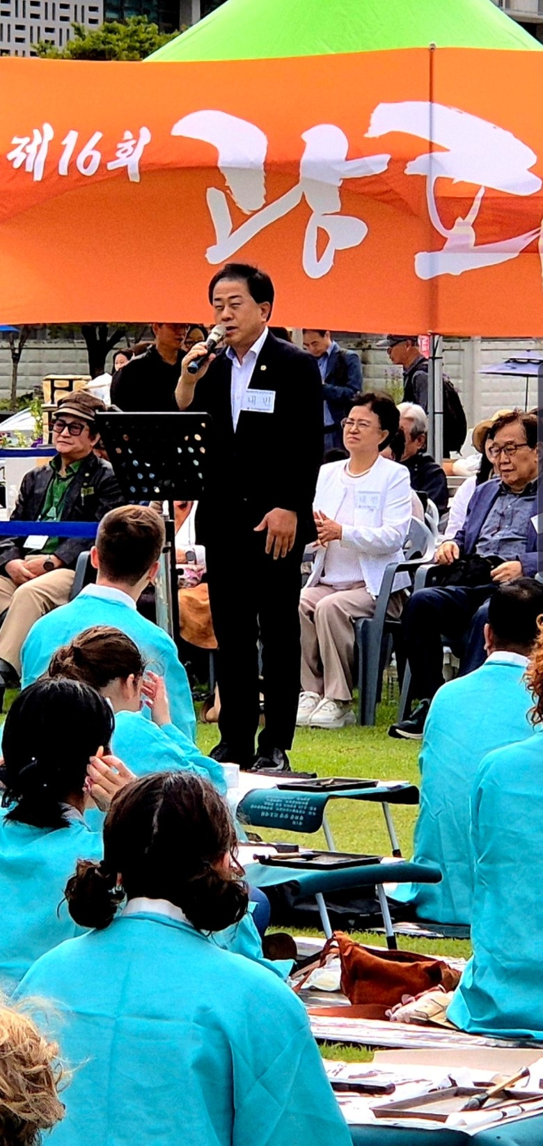 또한 김 의원은 이미재 용산구의원과 함께 행사장을 둘러보며 참가자들을 격려하고, 외국인 작가들과 기념사진을 찍는 등 소통의 시간을 가지면서 “세종대왕의 창제 정신을 기리며, 오늘 이 자리가 언어의 벽을 넘어 마음을 잇는 문화교류의 장이 되길 바란다”며 “한글이 세계 속 문화유산으로 더욱 빛나길 기대한다”고 전했다.