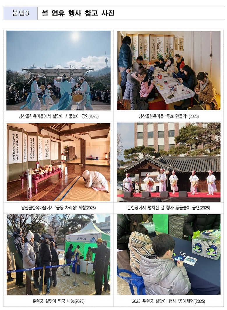- 남산골한옥마을‧운현궁‧서울역사박물관 등서 전통 놀이, 미술‧박물관 연휴에도 운영