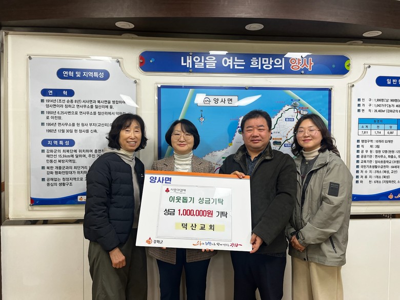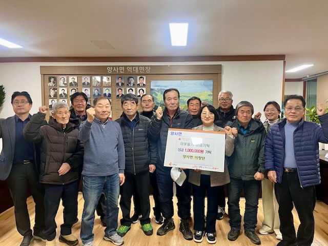 이에 이지영 양사면장은 “연말을 맞아 지역사회를 위한 따뜻한 나눔에 동참해 주신 모든 분들께 깊이 감사드린다”며, “기탁해주신 성금은 도움이 필요한 분들께 소중히 전달하겠다”고 감사 인사를 전했다.