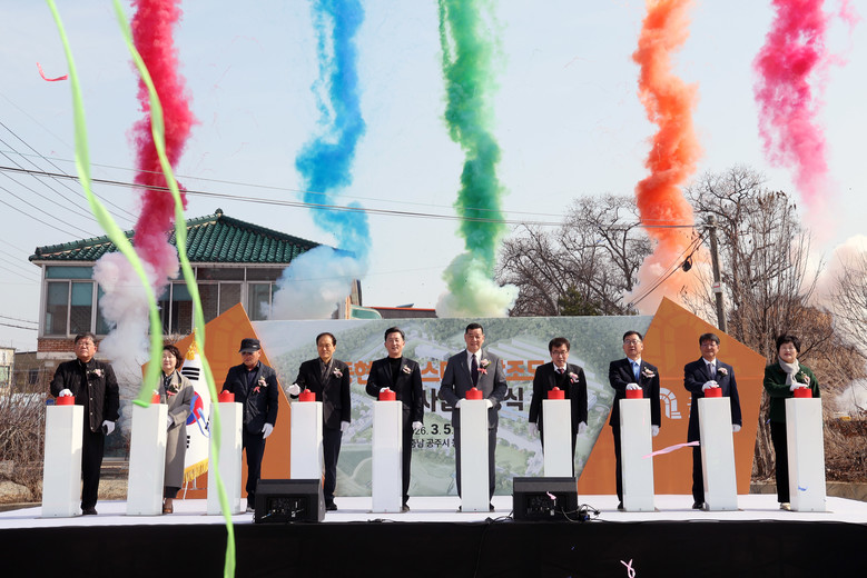 도는 5일 공주시 동현동 일원에서 전형식 도 정무부지사와 한상배 한국식품안전관리인증원장, 이종규 한국쌀가공식품협회 상임부회장, 최원철 공주시장 등이 참석한 가운데 ‘공주 동현지구 스마트 창조도시 조성사업’ 착공식을 개최했다.