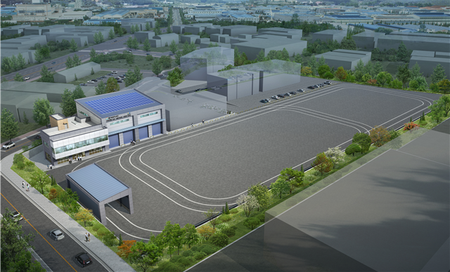 김해 명동일반산업단지 내에 세워질 시험평가센터는 연면적 1,198㎡, 지상 2층 규모로, 관제실, 정비실, 11,100㎡의 주행시험로, 환경시험터널 등으로 구성되며, 2027년 상반기 준공 예정이다.