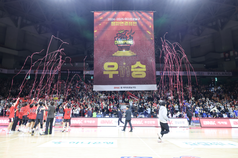 부산 비엔케이(BNK) 썸(SUM) 농구단은 아산 우리은행 우리 원(WON)을 3:0으로 꺾고 '2024-2025 여자 프로농구 챔피언 결정전'에서 승리하며, 2019년 창단이래 '첫 우승'이라는 금자탑을 세웠다.