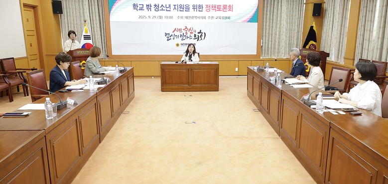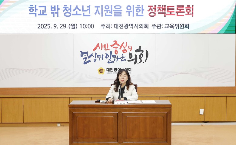 [대전 세계타임즈=이채봉 기자] 대전시의회는 29일 시의회 소통실에서 김민숙 의원(더불어민주당, 비례대표) 주재로 ‘학교 밖 청소년 지원을 위한 정책토론회'를 개최했다.