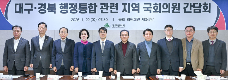 ▸ 조속한 행정통합 추진을 위한 지역정치권의 적극적인 지원 요청 [세계타임즈=대구 한윤석 기자] 대구광역시(대구광역시장 권한대행 행정부시장 김정기)는 1월 22일(목) 국회에서 대구지역 국회의원들과 만나 대구·경북 행정통합 추진을 위한 협력 방안을 논의했다.