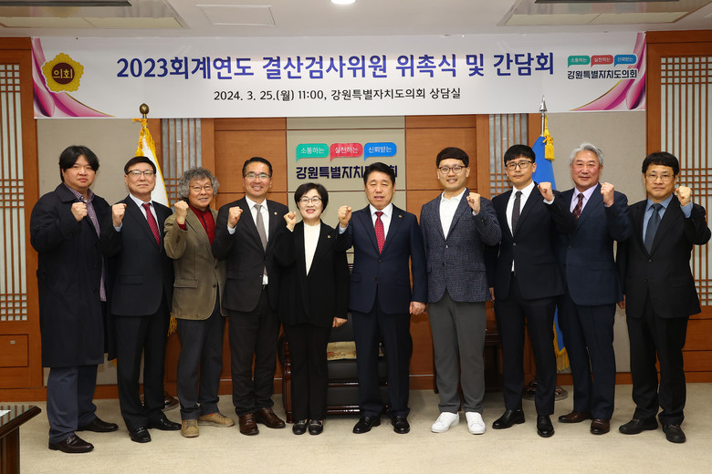 [강원도 세계타임즈=김민석 기자] 강원특별자치도의회(의장 권혁열)는 3월 25일 도의회 상담실에서 2023회계연도 강원특별자치도 및 도교육청의 결산검사를 위하여 9명의 결산검사위원을 위촉한다.