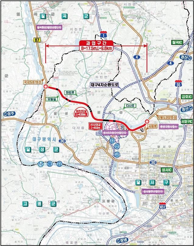 해당 사업은 2016년 예비타당성조사를 통과한 이후, 현재 토지 보상과 전 구간 공사가 단계적으로 진행 중이다. 대구시는 올해 연말까지 군도 14호선 이설 및 선사대교 구간 공사를 마무리하고, 마천산터널을 포함한 도로 포장 등 주요 공사를 2027년까지 단계별로 완료할 방침이다.