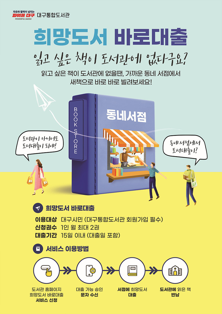 대구시는 도서관 통합허브시스템을 기반으로 지역 편차 없는 도서관 서비스 제공을 위해 생활밀착형 도서관 서비스를 지속적으로 발굴·추진하고 있다.