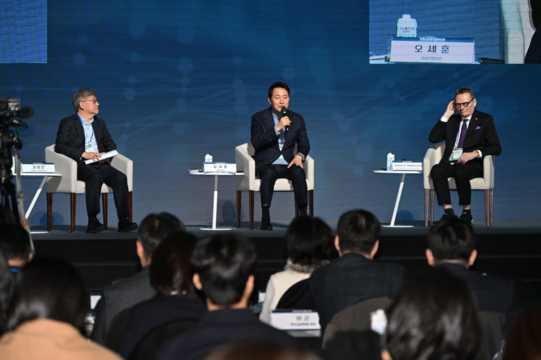 이어진 특별대담에서는 제임스 로빈슨 교수, 강성진 고려대학교 교수, 오세훈 서울시장이 함께 ‘인공지능(AI)’ 고도화 시대, 고용 없는 성장에 대응하기 위한 정부의 새로운 역할에 대해 토론했다.
