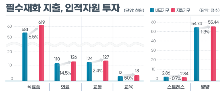 연구 결과, 디딤돌소득 수급가구의 총소득이 증가해 월평균 가구소득이 비수급가구보다 25만 원 높았다고 언급하며 이를 통해 교통비.식료품비 같은 필수재 지출이 늘었고, 이는 정신건강 및 영양지수 개선으로 이어졌다고 강조했다.