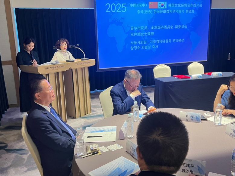 [서울 세계타임즈=이장성 기자] 서울특별시의회 왕정순 시의원(더불어민주당, 관악구)은 지난 7월 11일(금) 오후 2시 앰배서더 풀만 호텔 남산홀에서 열린 '2025 중국(한중)-한국 문화경제무역협력 설명회'에 참석하여 축사를 전했다. 이번 설명회는 한중도시우호협회와 중국 섬서성 한중시 인민정부의 주최로 진행되었다.
