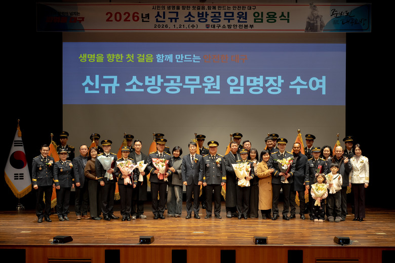한편, 이번에 임용된 102명의 신규 소방공무원은 각 소방서 119안전센터 및 구조대 등에 배치돼 대구 시민의 생명과 재산을 보호하는 현장 최일선 업무를 시작할 예정이다.