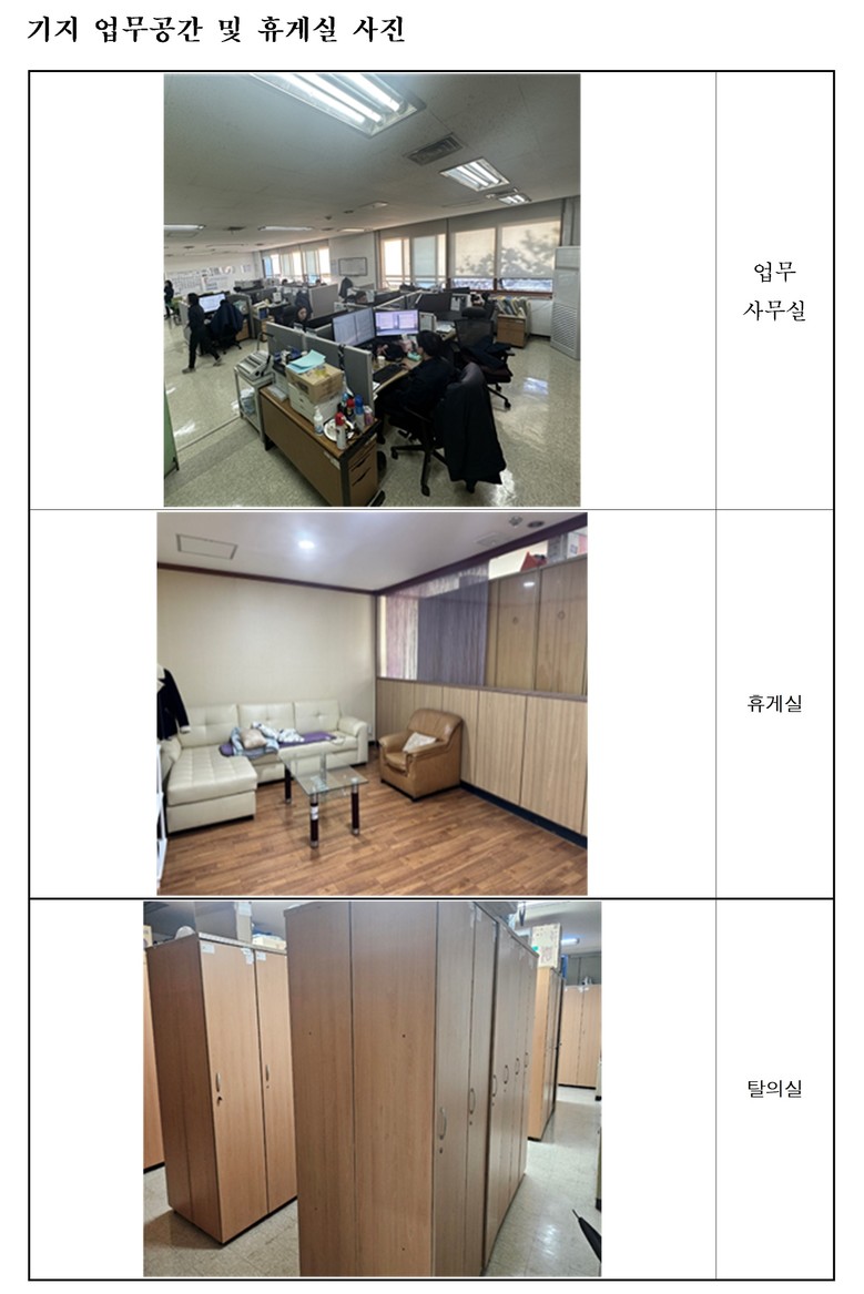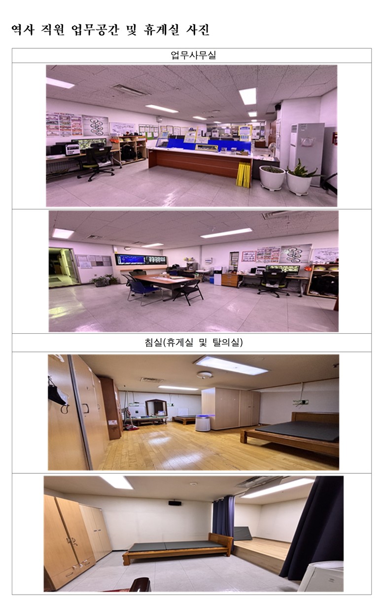 차량기지의 경우 11개 차량기지에 업무사무실 379개, 휴게실 170개, 탈의실 128개가 확인됐다.
