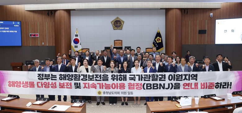 [충남 세계타임즈=백택기 기자] 충남도의회가 지속가능한 해양 환경조성에 앞장서고 있다. 도의회는 10일 이연희 의원(서산3·국민의힘)이 대표 발의한 ‘국가관할권 이원지역 해양생물다양성 보전 및 지속가능이용(이하 ‘BBNJ’) 협정 촉구 건의안’을 제355회 임시회 제4차 본회의에서 채택했다.