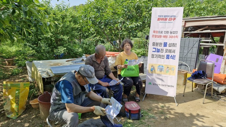▸ 7월 1일부터 한 달간 농촌진흥청 온열질환 예방 자율점검 이벤트 실시 [세계타임즈=대구 한윤석 기자] 대구광역시농업기술센터(소장 김수진)는 7월 2일부터 23일까지 총 4회에 걸쳐 지역 고령 농업인을 대상으로 찾아가는 고령농 디지털 교육과 농업현장 폭염 대비를 위한 온열질환 예방교육을 실시한다.