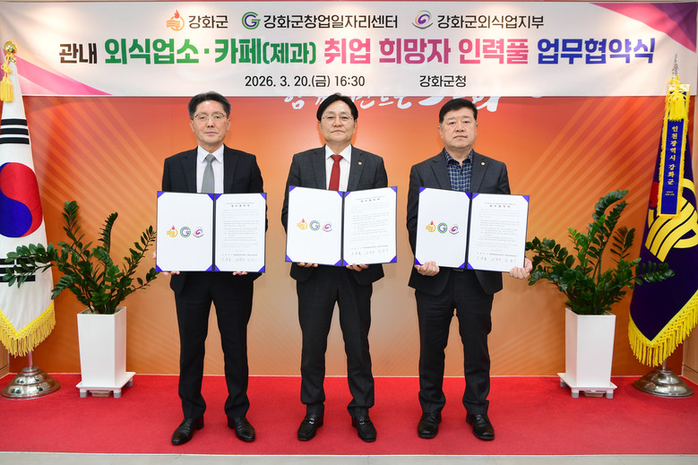 협약에 따라 강화군은 사업 홍보 및 행정적 지원을 담당하고, 창업·일자리센터는 인력풀 모집과 관리, 구인·구직 매칭 등 사업 운영 전반을 총괄한다. 외식업지부는 관내 외식업소와 카페(제과)를 대상으로 사업 안내와 참여를 적극 독려하는 역할을 맡는다.