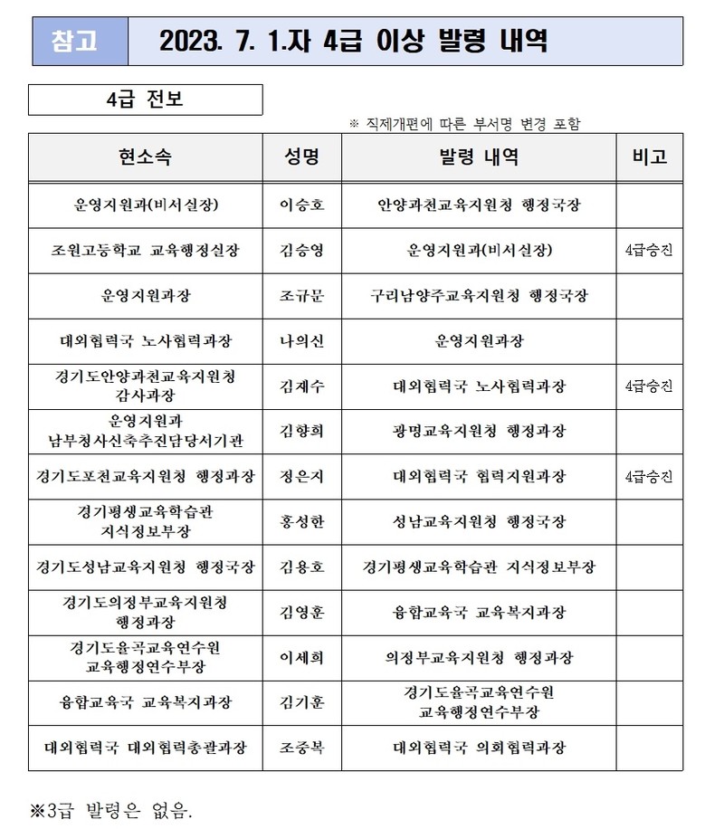 경기도교육청(교육감 임태희)이 7월 1일 자 지방공무원 인사 총 1,636명을 23일 발표했다.
