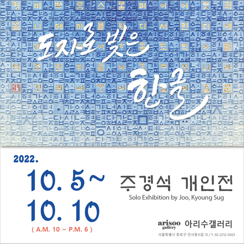 "도자로 빚은 한글" 개인전을 진행 중인 주경석 작가는 "우리 민족의 가장 위대한 성군 세종대왕께서 창제하신 훈민정음을 도자 예술로 승화해 보려고 많은 노력의 시간이 있었다. 작업을 하면서 우리 한글의 아름다움과 위대함을 점점 더 많이 깨닫게 되고, 한글 자체가 예술적이어서 예술을 입힌 문자의 매력을 많은 분들에게 알리고 싶었다."고 말했다. 작가는 세종대학교 융합예술대학원 도자회화학과 출신으로 개인전과 단체전을 통해 사랑 받는 한글의 효용성을 깨닫게 하는 작품으로 창작활동을 활발히 하고 있다.