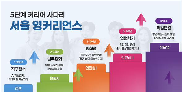- 市, 내년부터 청년 일자리 정책 재학생 중심으로…5단계 인턴십 ‘서울영커리언스’ 본격 추진