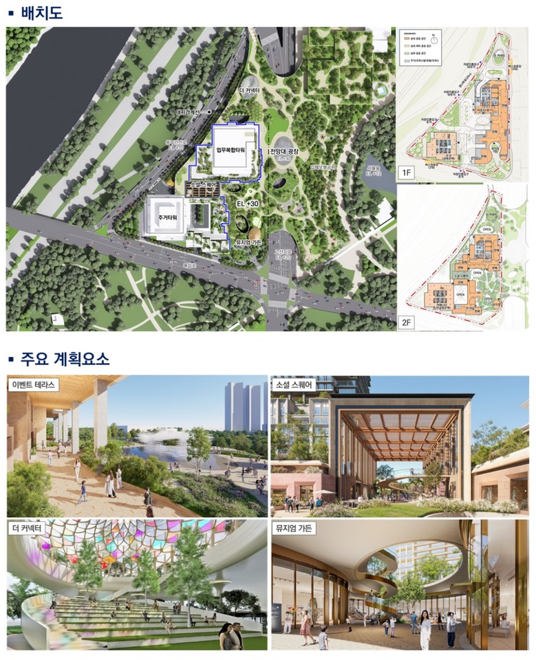 또 서울숲과 부지를 연결하는 ‘입체 보행데크’가 설치되고, 지상부에는 시민에게 상시 개방되는 대규모 녹지와 광장이 들어서 서울숲의 녹지축이 부지까지 확장되게끔 조성된다.