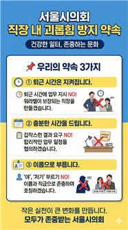 김 의원은 간담회에서 나온 의견을 토대로 직장 내 괴롭힘 예방 메시지를 카드뉴스로 제작해 직원들과 공유하고 있다. 일상적인 상황에서 참고할 수 있도록 쉬운 표현으로 구성해 조직 전체에 건강한 직장 문화를 확산하는 데 활용하고 있다.