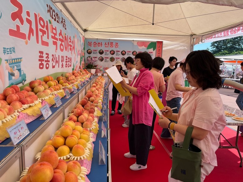 세종특별자치시는 25일 세종시민운동장에서 ‘제23회 세종 조치원복숭아 축제’의 부대행사로 ‘세종 조치원복숭아 품종 전시 및 품평회’를 개최했다.