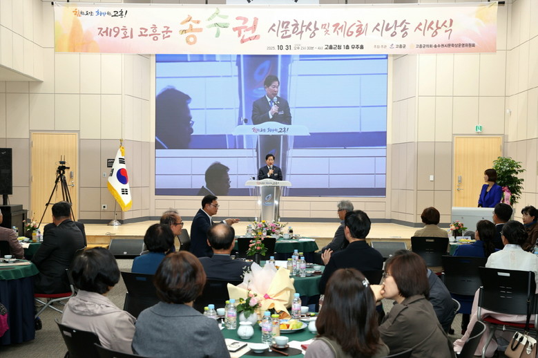 [고흥군 세계타임즈=우덕현 기자] 고흥군(군수 공영민)은 31일 군청 우주홀에서 ‘제9회 송수권 시문학상 및 제6회 송수권 시 낭송대회’ 시상식을 성황리에 마무리했다고 밝혔다.
